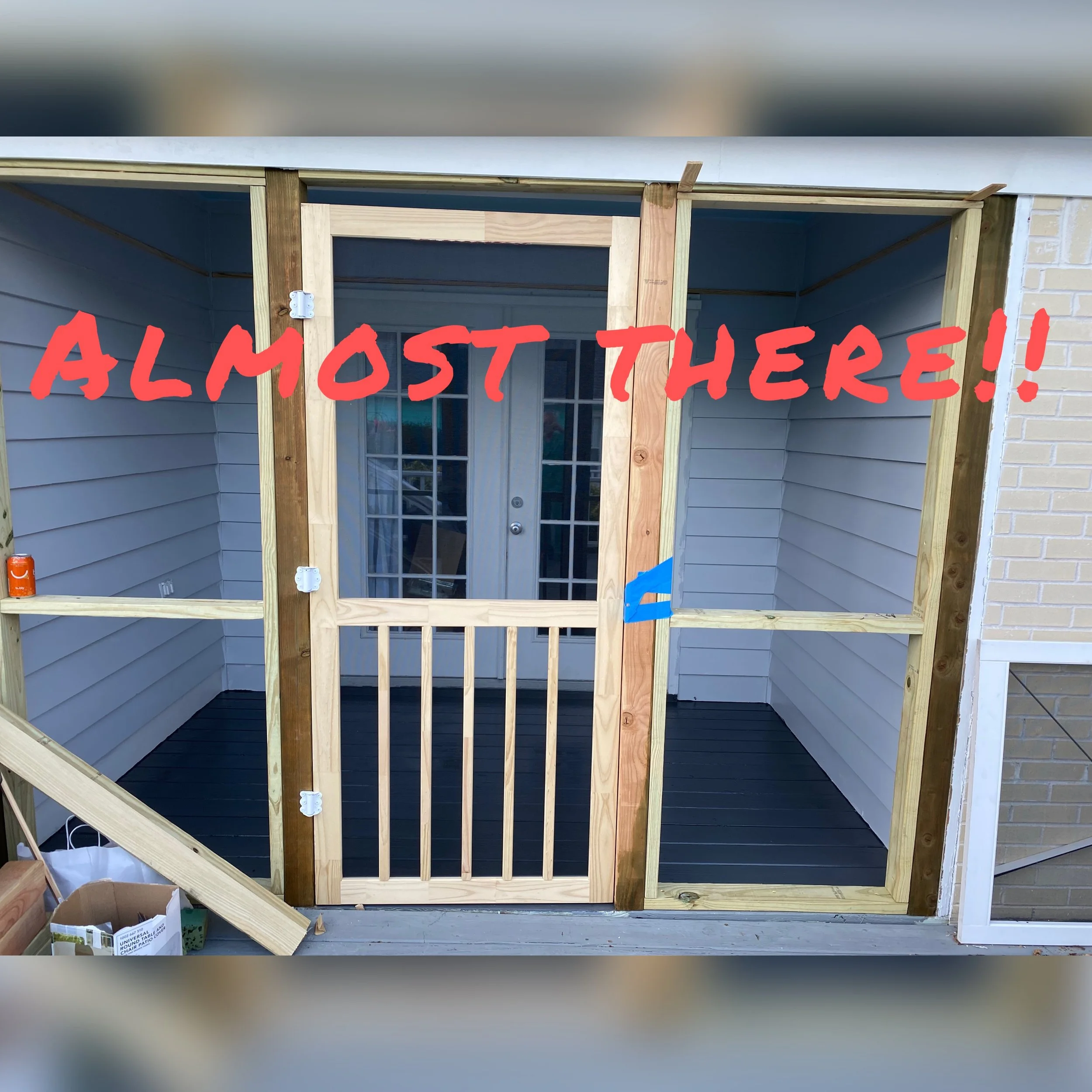 Feel like I blinked and Week 7 was over! The weather improved and so did I. 😊 Feel like I blinked and Week 7 was over! The weather improved and so did I. Framed out screen porch wall. Discovered that I had to add a 1x4 to the 2x4 top plate to increase thickness in order to install Screen Tight tracks…